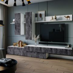 Стильная гостиная «Фрида» по праву займет центральное место Вашей зоны отдыха, вмещая в себя все самое необходимое для хранения декора, вещей, просмотра ТВ и другого досуга.