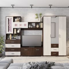 Гостиная Белла (Центральная секция/Шкаф 3-х ств.) венге/ясень белый
