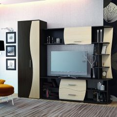 Современный дизайн стенки придает ей особую элегантность. Несомненно, стенка привлечет к себе внимание ваших гостей и станет украшением гостиной. Открытые полки, шкаф платяной с выдвижной штангой.