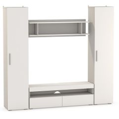 Состоит из: стола-книжки с 2-мя выдвижными ящиками и шкафом. Изделие симметричное.