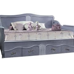 «кремовый белый», который уже успел полюбиться клиентам фабрики по серии «Марлен», но отличается более современным дизайном. В нем отсутствуют замысловатые декоративные элементы и колонны, на первый план выходят прямые линии. Украшением комплекта служат оригинальные итальянские ручки золотистого цвета. В оформлении фасадов комода сделан необычный ход. Некоторые линии, делящие ящики на, казалось бы, самостоятельные отсеки, на самом деле являются фрезеровкой. Кровать оснащена мягким тканевым изголовьем, что является сейчас безусловным трендом.