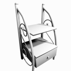 Металлическая прикроватная тумба станет прекрасным дополнением к кровати. Фигурные завитки на опорах тумбы повторяют узор спинок кровати, делая интерьер спальни завершенным. Тумба имеет полку и выдвижной ящик для мелочей.