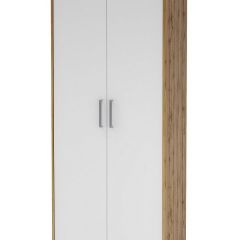 Вместительный шкаф с перегородкой. Одна секция шкафа представляет собой отдел с полками, а во второй расположена выдвижная штанга под одежду.